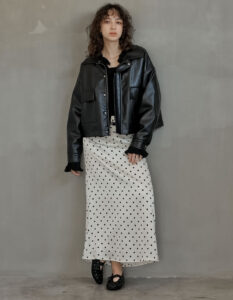 • 例:「レザーショートブルゾン×チョコブラウンスカート」など。